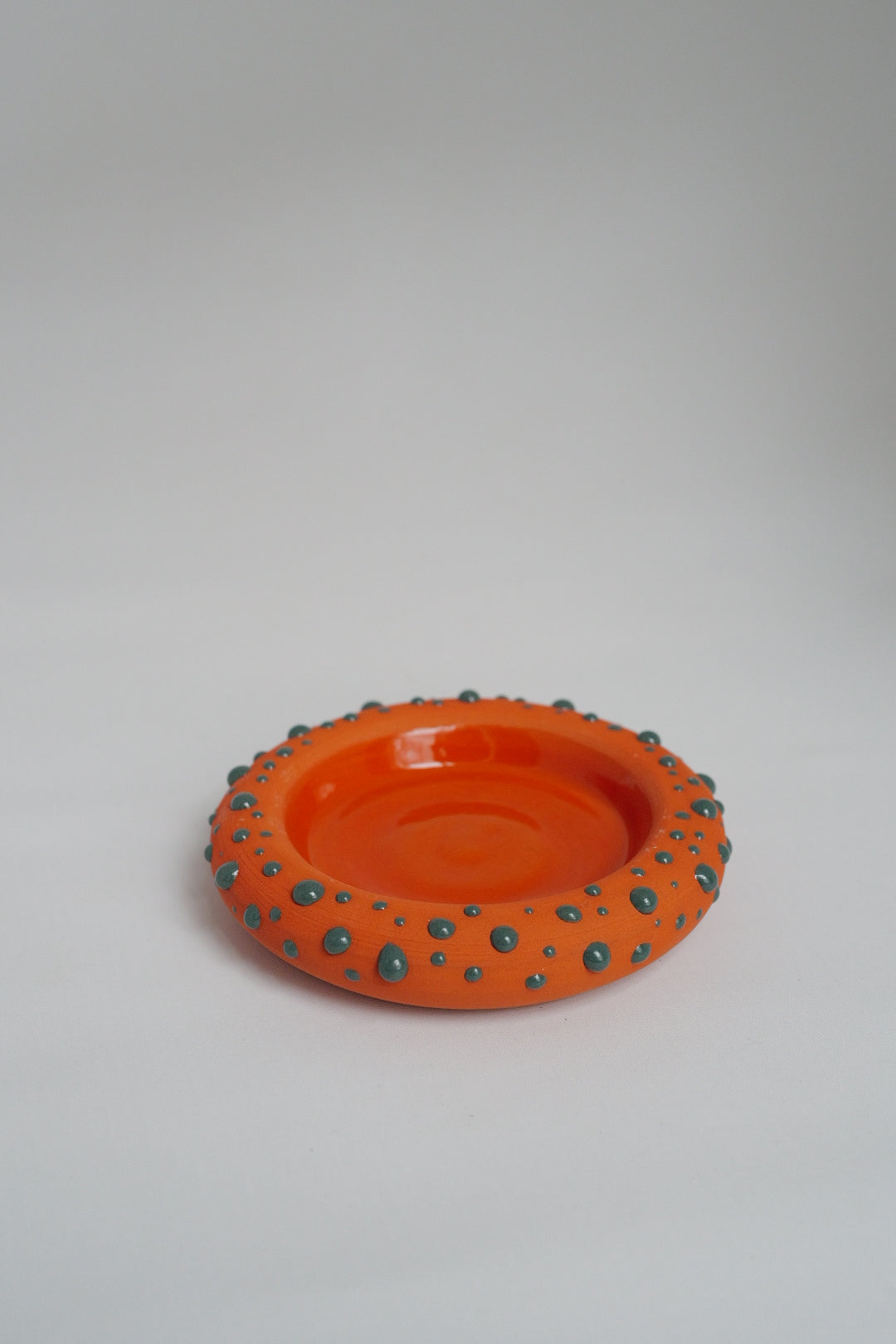 Deep forest green meets bright festive orange in this tactile mug + coaster set. Hand-decorated with playful drops to bring holiday cheer to every sip