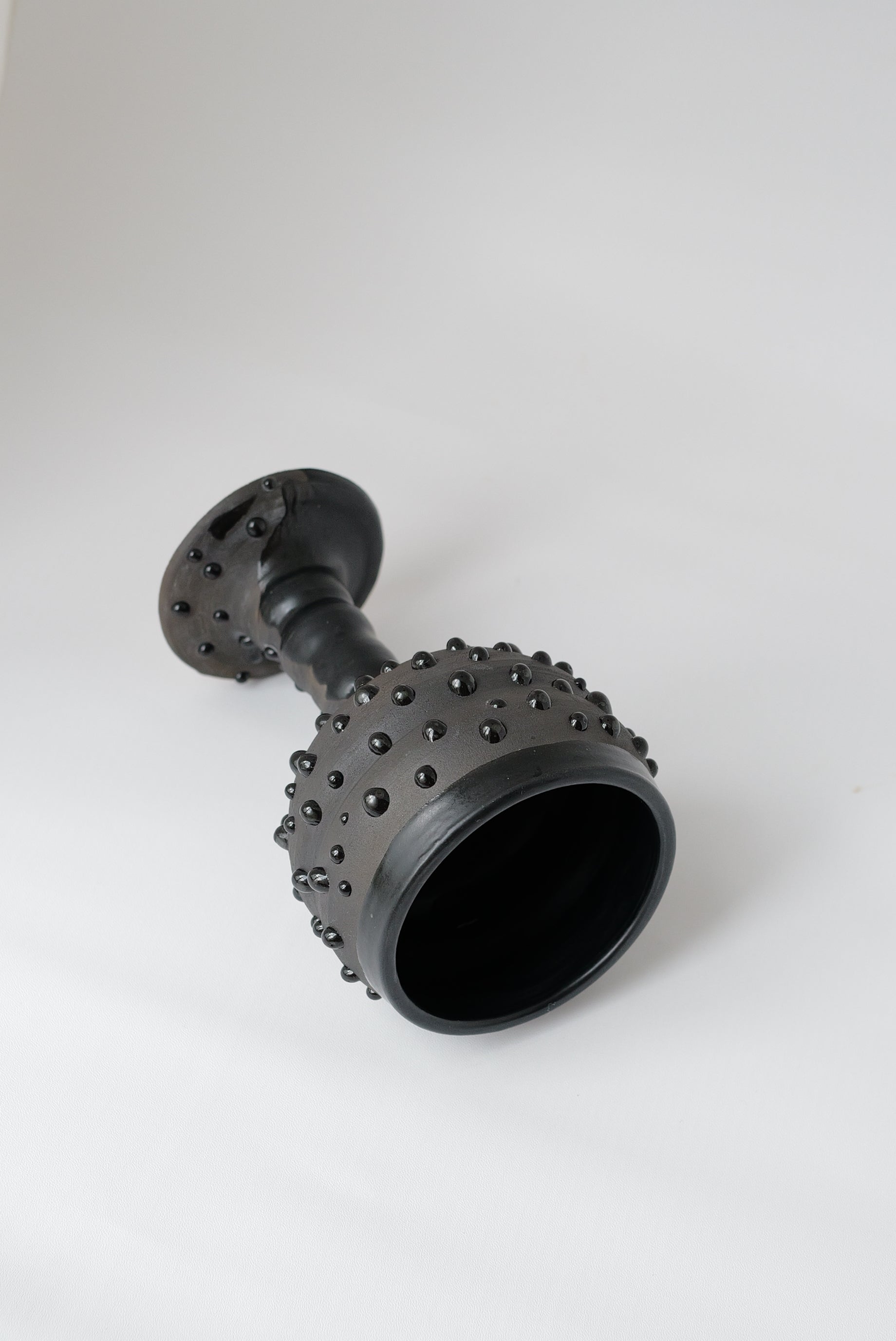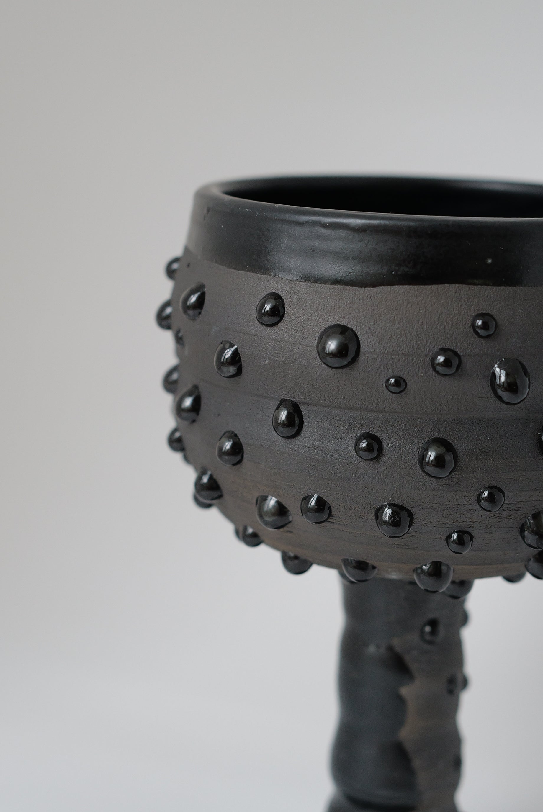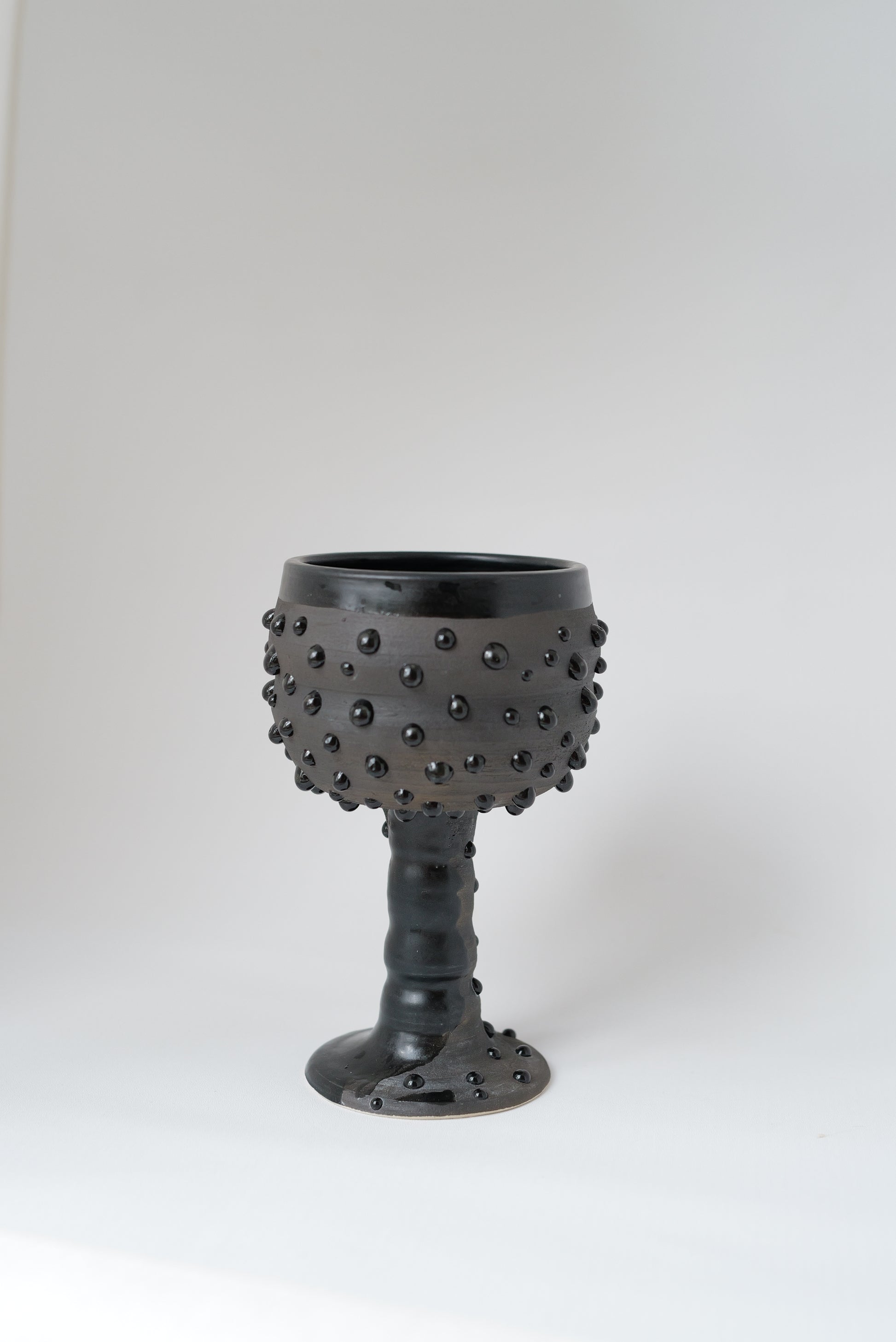 A versatile hand-thrown mug finished in matte black, accented with individually applied glossy dots for a tactile, sculptural feel. Its shape and size make it perfect not only for coffee or tea, but also for wine and other slow-sipped drinks.
