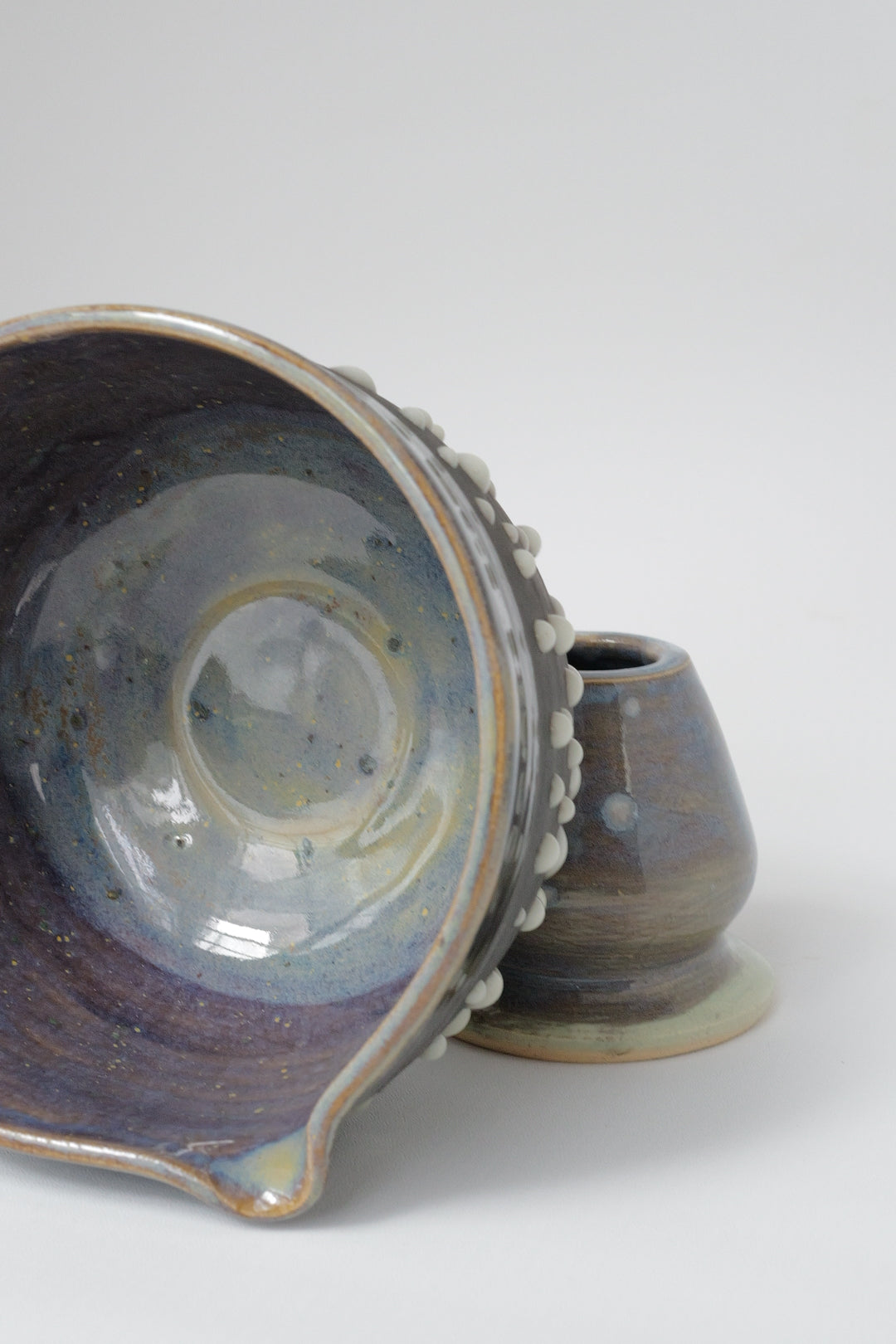 This drippy duo is here to stir things up! A speckled bowl with matching whisk holder, glazed like a galaxy in motion. Perfect for matcha moments, messy experiments, or just sitting pretty on your shelf.